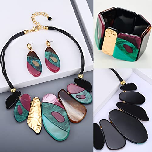 Statement Acrylic Jewelry Set for Women, Big Bohemian Multicolor Bib Necklaces Bangle Bracelet Dangle Earrings Chunky Jewelry Sets